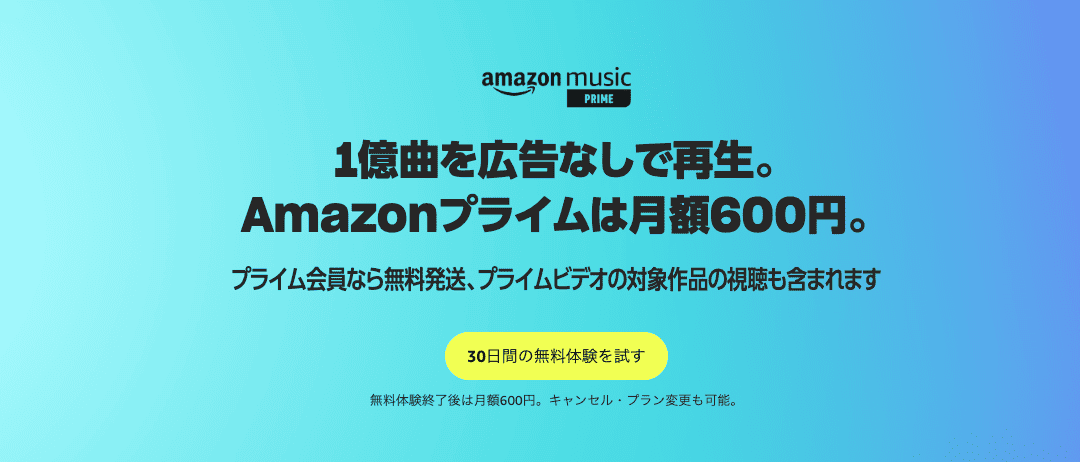 なお、Amazonプライムには30日間の無料体験が用意されています。